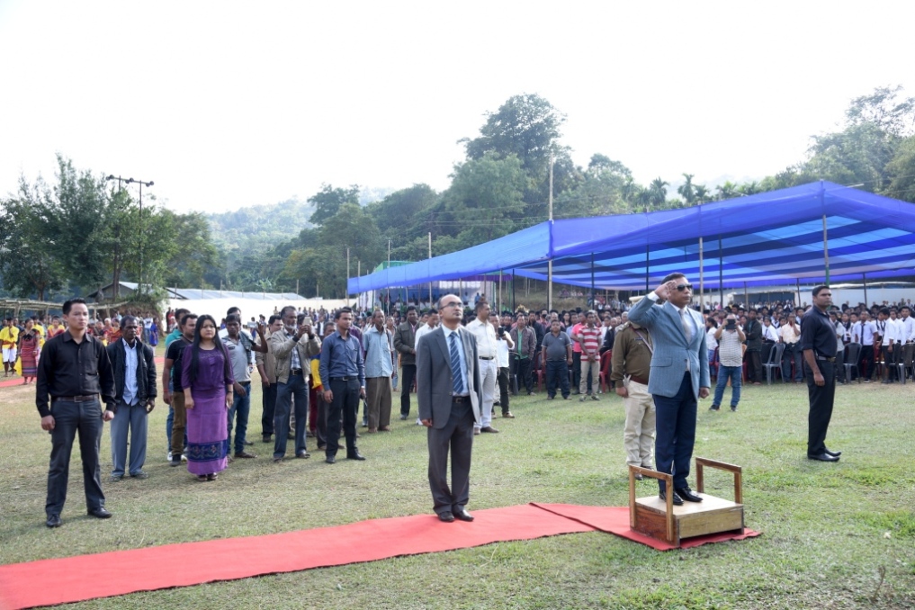 Chief Guest and attendees paying tribute to the National Anthem |