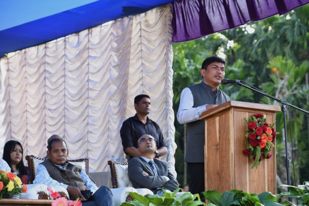 Shri. Zenith M. Sangma, Minister of Housing Department - Sports & Youth Affairs giving his address |